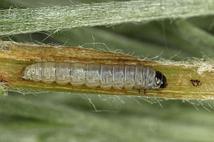 1: Deutschland, Baden-Württemberg, Kaiserstuhl, Badberg, Halbtrockenrasen, Raupenfund an Feldbeifuß (Artemisia campestris) 30. Mai 2010 (leg., cult. zu Falter 2 & Foto: Gabi Krumm), det. Raupe und Falter Markus FluriForum