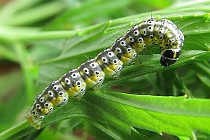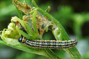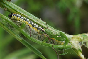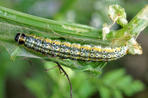 Harper et al. (2002: 126) führen weitere Nahrungspflanzen aus Großbritannien an, wiederum meist Oenanthe-Arten sehr nasser Standorte: "Ovum laid on various species of water-dropwort (Oenanthe spp.) including hemlock water-dropwort (O. crocata), fine-leaved water-dropwort (O. aquatica), corky-fruited water-dropwort (O. pimpinelloides) and tubular water-dropwort (O. fistulosa); also on whorled caraway (Carum verticillatum or, occasionally, stone parsley (Sison amomum) (Wakely, 1962)."