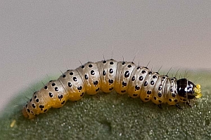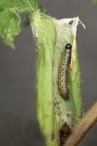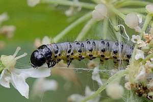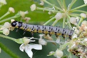 Die Raupe ernährt sich von Knospen, Blüten und Samen.