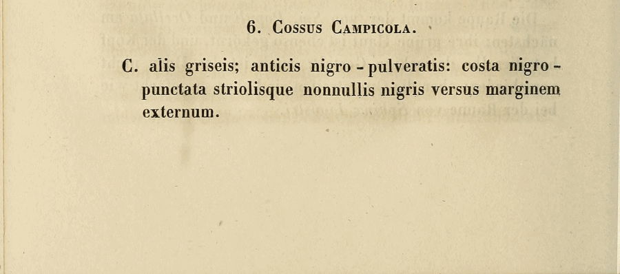 - Cossus campicola Eversmann, 1854 [Originalkombination]
