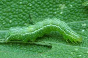 2-3: Deutschland, Sachsen, Dresden, Kleingartensiedlung, Raupe an Gartensalbei fressend am 29. Juni 2007, 30. Juni 2007 (Studiofotos: Franziska Bauer), cult. & det. Franziska BauerForum