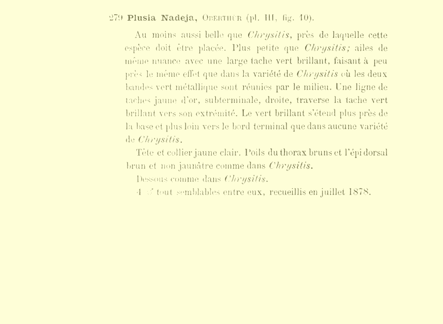 - Plusia nadeja Oberthür, 1880 [Originalkombination]