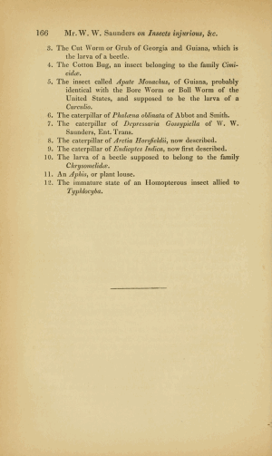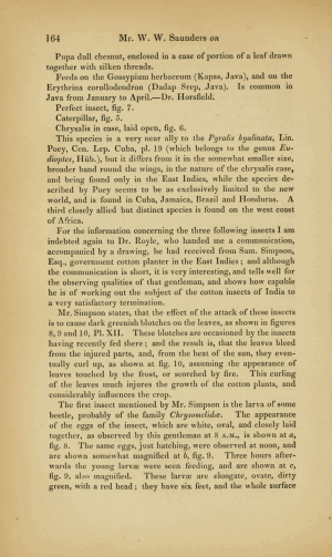 - Erstbeschreibung: Saunders, W. W. (1851): On Insects injurious on the Cotton Plant. — The Transactions of the Entomological Society of London. New Series 1: 158-166.