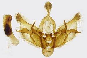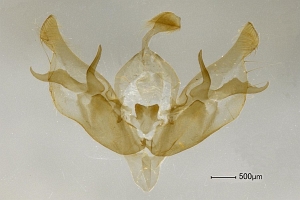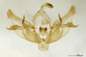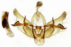 9-10: ♂, Estland, Landkreis Vöru, 24 km S Vöru, Ruusmäe, Laubwaldrand, Ödland, Espengebüsch, 57.629°N, 27.92°E, 220 m, 8. August 2013 (leg., präp. & fot.: Hartmuth Strutzberg)Forum