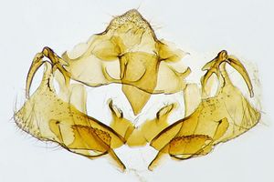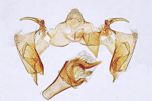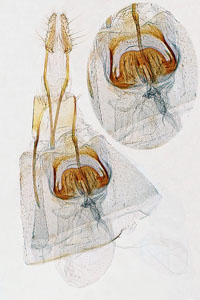 1-2: ♀ Rumänien, Umgebung Sibiu, 2.August 2005, am Licht (leg., & gen. det.: Friedmar Graf, präp. & fot.: Hans-Peter Deuring)Forum