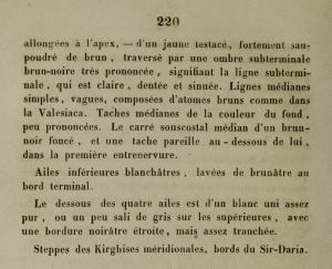 - Erstbeschreibung: Eversmann, [E.] (1856): Les noctuélites de la Russie. — Bulletin de la Société Impériale des Naturalistes de Moscou 29 (2): 161-233, pl. I-III.
