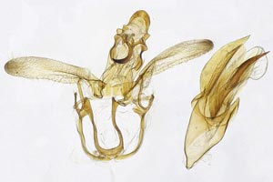 2-3: ♂, Deutschland, Sachsen, Dübener Heide, Umgebung von Doberschütz, Raupe leg. 5. September 2007, 20. März 2008 (Studiofotos: Heidrun Melzer), cult. & det. Heidrun MelzerForum