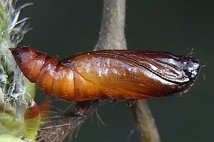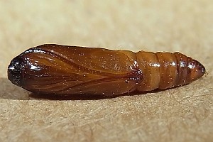 6: Deutschland, Sachsen, Dübener Heide, Umgebung von Doberschütz, Raupenfund an Bergahorn (Acer pseudo-platanus) 9. Juli 2008, verpuppt nach Überwinterung, e.l. 15. April 2009 (Foto: Heidrun Melzer), leg., cult. & det. Heidrun Melzer