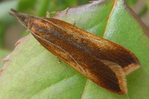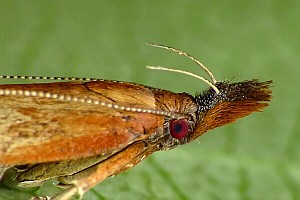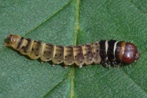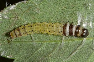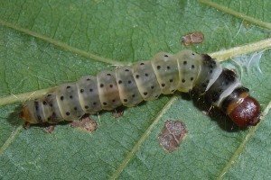 9: Österreich, Niederösterreich, Seebenstein, leg. Raupe 28. August 2010 an Birke (Betula pendula), Überwinterung als erwachsene Raupe zwischen 2 aufeinandergesponnenen Blättern, Verpuppungszeitpunkt nicht näher bekannt, e.p. 28. April 2011 (Foto: Peter Buchner), det. Peter Buchner