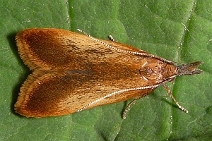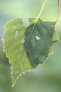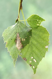 1-2: Raupenwohnung aus 2 aufeinandergesponnenen Blättern von Birke (Betula pendula), Österreich, Niederösterreich, Seebenstein, leg. Raupe 28. August 2010, Fotos vom 29. August (unveränderte Blattwohnung) bzw. 2. September (im Zuchtgefäß neu angelegte Blattwohnung) (Fotos: Peter Buchner), det. durch Zucht (= Falterfoto 9) Peter Buchner