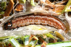 1-2: Jungraupe und erwachsene Raupe, Daten s. Falterbilder 1-2 (Studioaufnahme: Rudolf Bryner), cult. & det. Rudolf Bryner