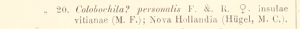 - Original description: Felder & Felder & A. F. Rogenhofer (1864-1875): Reise der österreichischen Fregatte Novara um die Erde in den Jahren 1857, 1858, 1859 unter den Befehlen des Commodore B. von Wüllerstorf-Urbair. Zoologischer Theil. Zweiter Band. Zweite Abtheilung: Lepidoptera. Atlas: Inhalts-Verzeichniss Rhopalocera 1-9, Erklärung der Tafeln LXXV bis CVII 1-10, Inhalts-Verzeichniss Heterocera 1-20, pl. I-CXL. Wien (Kaiserlich-königliche Hof- und Staatsdruckerei).