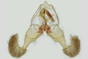 Kennel (1921: 625) hatte geschrieben: "Die Raupe ist weißlich, der Kopf hellbraun, Nackenschild und Analklappe sind gelblich, wenig ausgeprägt. Sie lebt bis Mai in Wurzeln von Tanacetum".