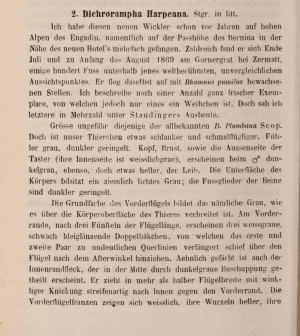 Frey (1870) beschrieb seine Art als "Dichrorampha Harpeana. Stgr. in litt."; seine Arbeit erschien laut Angaben auf dem Heft im April 1870. Seine Beschreibung ist eine eigene, nur den Namen übernimmt er nach dem Vorschlag Staudingers, allerdings sind viele Passagen - so auch die genannten Fundorte - der beiden Beschreibungen mehr oder weniger identisch. Staudinger selbst beschrieb seine "Dichrorampha Harpeana n. sp." ohne Hinweis auf Frey (1870); das entsprechende Doppelhaft wurde laut Aufdruck im Januar 1871 herausgegeben. Damit hat H. Frey eindeutig als Beschreiber der Art zu gelten.