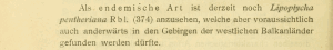- Erstbeschreibung: Rebel, H. (1917): Lepidopteren aus Neumontenegro (Ergebnisse der im Jahre 1916 im Auftrage und auf Kosten der Kaiserl. Akademie der Wissenschaften in Wien von Dr. Arnold Penther ausgeführten zoologischen Forschungsreise in Serbien und Neumontenegro). — Sitzungsberichte der Kaiserlichen Akademie der WIssenschaften in Wien. Mathematisch-naturwissenschaftliche Klasse. Abteilung I 126: 765-813.