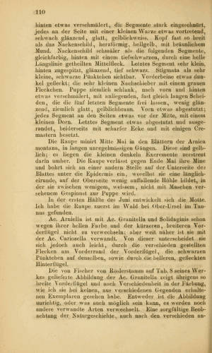 Schon der Erstbeschreibung von von Heyden (1863) ist zu entnehmen, dass die Raupe Mitte Mai in auffälligen Blattminen an Arnika zu finden ist.