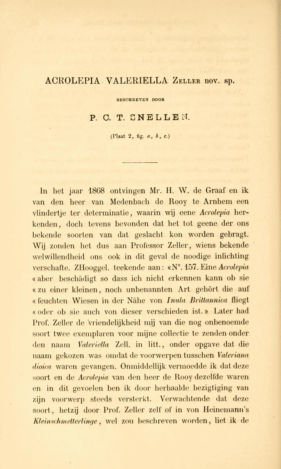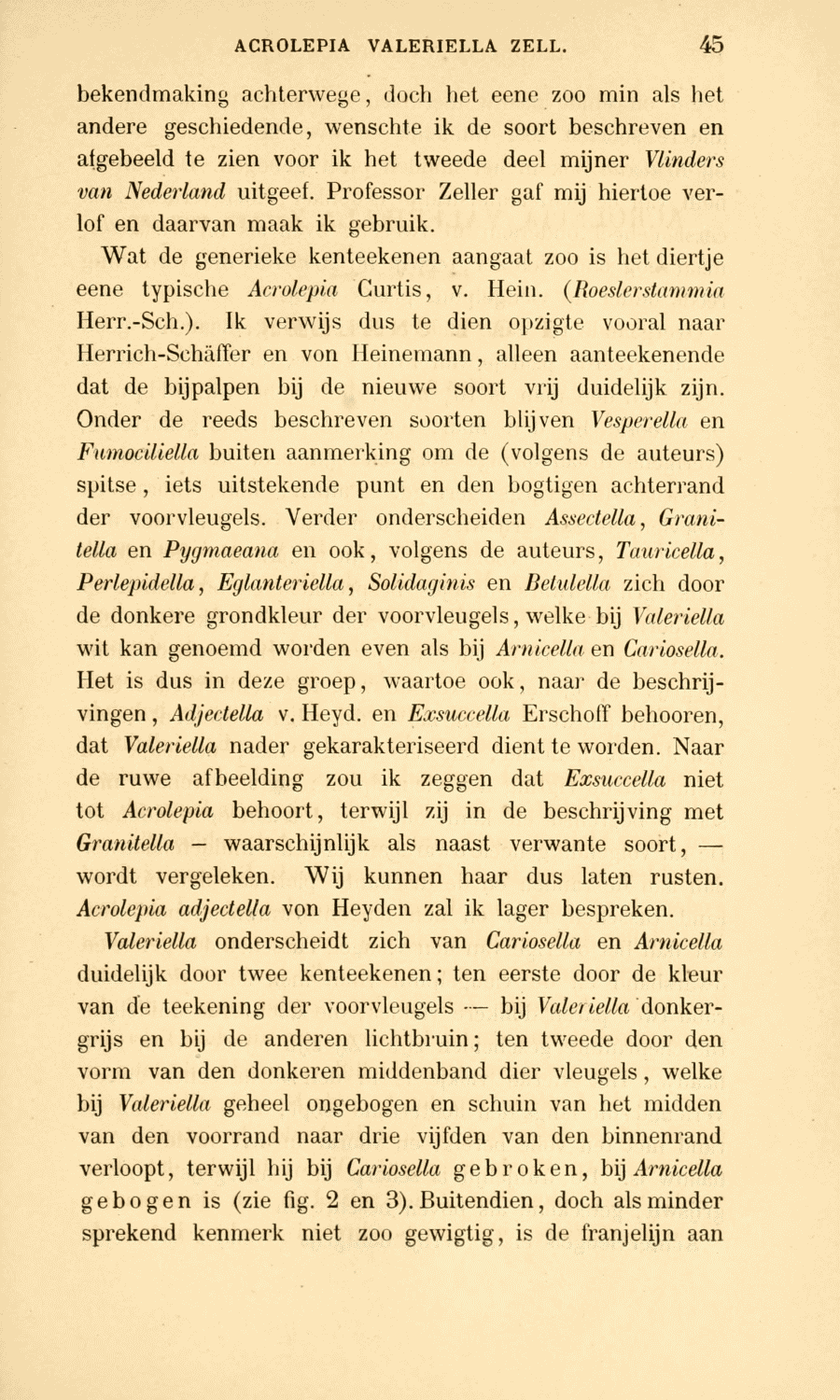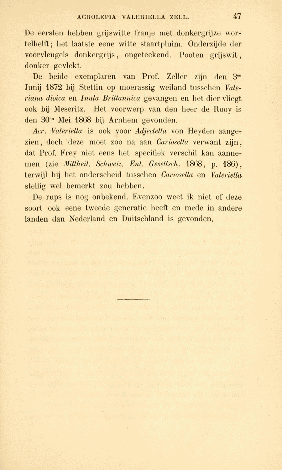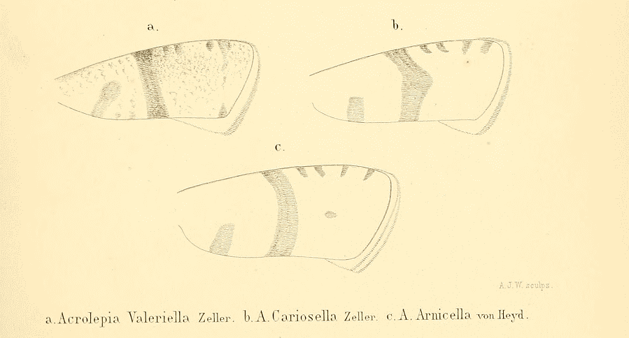 - Erstbeschreibung: Snellen, P. C. T. (1877) [1878]: Acrolepia valeriella Zeller nov. sp. — Tijdschrift voor entomologie 21: 44-47 + pl. 2. s'Gravenhage (Martinus Nijhoff).