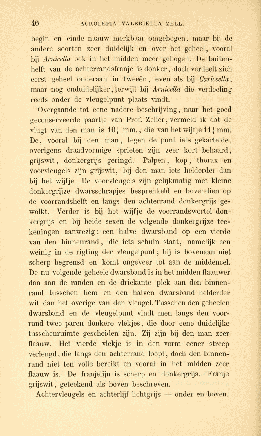 Snellen (1878) zitiert aus einem Anschreiben Zellers: „N°. 157. Eine Acrolepia aber beschädigt so dass ich nicht erkennen kann ob sie zu einer kleinen, noch unbenannten Art gehört die auf feuchten Wiesen in der Nähe von Inula Brittannica fliegt oder ob sie auch von dieser verschieden ist.“. Er berichtet, dass ihm Zeller dann zwei Exemplare unter dem Namen „Acrolepia valeriella“ geschickt habe, da an der Fundstelle viel Valeriana dioica (Sumpf-Baldrian) wuchs. Snellen übernahm den von Zeller vorgeschlagenen Namen. Erst später sollte sich herausstellen, dass die erste Vermutung, dass die Art etwas mit dem Wiesen-Alant zu tun habe, hinsichtlich der Raupennahrung die richtige war.