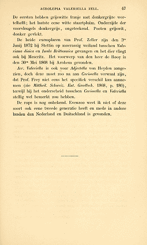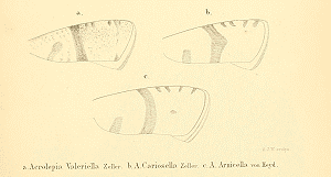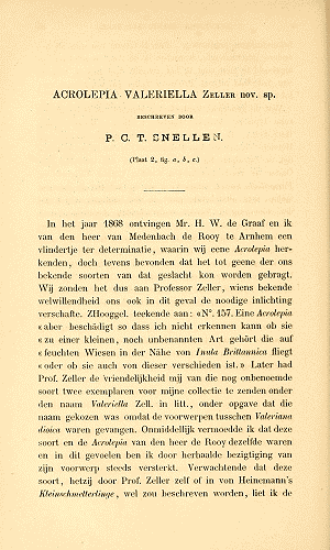 Snellen (1878) zitiert aus einem Anschreiben Zellers: „N°. 157. Eine Acrolepia aber beschädigt so dass ich nicht erkennen kann ob sie zu einer kleinen, noch unbenannten Art gehört die auf feuchten Wiesen in der Nähe von Inula Brittannica fliegt oder ob sie auch von dieser verschieden ist.“. Er berichtet, dass ihm Zeller dann zwei Exemplare unter dem Namen „Acrolepia valeriella“ geschickt habe, da an der Fundstelle viel Valeriana dioica (Sumpf-Baldrian) wuchs. Snellen übernahm den von Zeller vorgeschlagenen Namen. Erst später sollte sich herausstellen, dass die erste Vermutung, dass die Art etwas mit dem Wiesen-Alant zu tun habe, hinsichtlich der Raupennahrung die richtige war.