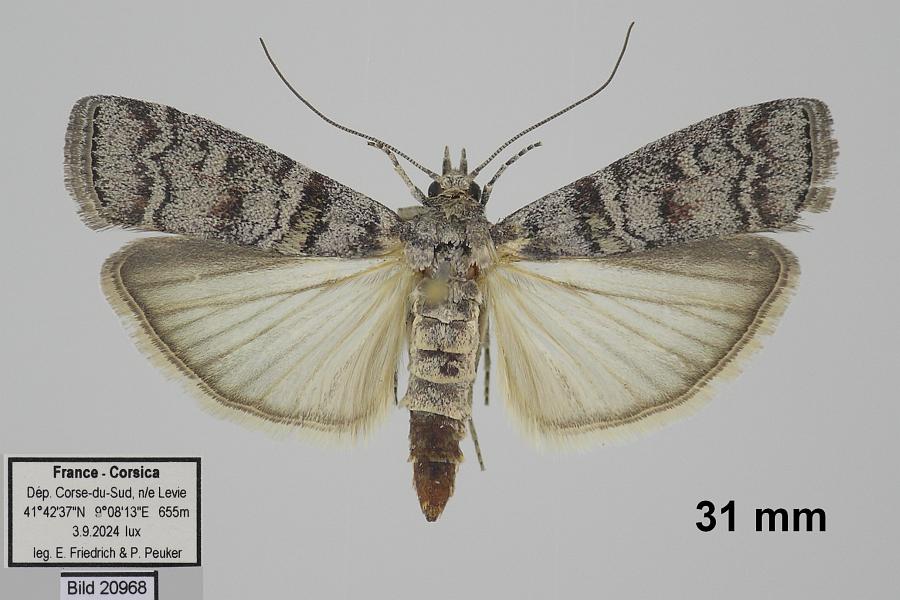 11: ♀, Italien, Sizilien, Palermo, Umgebung Polizzi Generosa, 1020 m, 37.841928, 14.008394, 22. + 23. August 2020, am Licht (leg., gen. det. & fot.: Friedmar Graf), Referenz: Leraut, P. (2014): Moths of Europe. Volume 4. Pyralids 2; Gen. Fig. 103 bForum