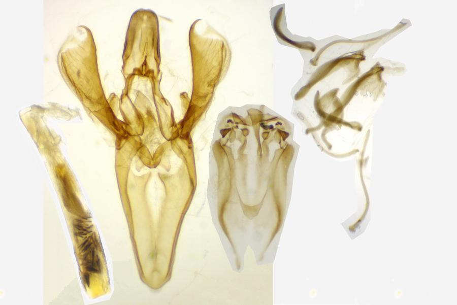 1: Genitalpräparat des unter Lebendbild 7-9 abgebildeten ♂, Albanien, Umgebung Divjakë, Küstenwald mit Brackwasserzonen, 3 m, 17. Juli 2014, am Licht (Präparation & Foto: Friedmar Graf)Forum