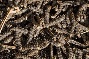1: "Prozession" von Larven von Trauermücken (Sciaridae): Bayern, Forstweg unweit von Abtsried (zwischen Rott und Dießen am Ammersee), Juni 2010 (Freilandfoto: Karen Holt), det. Holger MartzForum