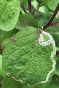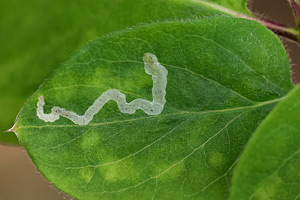 5: Gangmine von Agromyzidae: Deutschland, Baden-Württemberg, Untermünkheim, 250 m, Waldwegrand, an Lonicera xylosteum (Rote Heckenkirsche), 7. Mai 2021 (Foto: Uwe Knorr), det. Tina SchulzForum