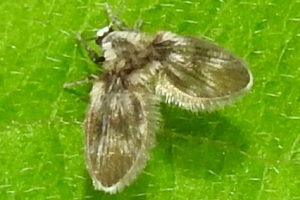 5: Schmetterlingsmücke (Psychodidae): Schweiz, Kanton Bern, Kehrsatz, Hausfassade, 700 m (Freilandaufnahme: Konrad Ingold)Forum