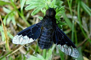 4: Hemipenthes morio (Trauerschweber): Deutschland, Sachsen, Bienitz bei Leipzig, 120 m, 24. Mai 2008 (det. & Foto: Dietrich Wagler)