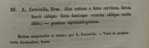 - Erstbeschreibung: Eversmann, E. (1844): Fauna lepidopterologica volgo-uralensis exhibens lepidopterorum species quas per viginti quinque annos in provinciis Volgam fluvium inter et montes Uralenses sitis observavit et descripsit. I-XIV, 1-633. Casani (typis universitatis) [Digitalisat von Google Books im Viewer der Hathi Trust Digital Library].