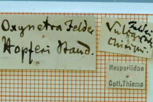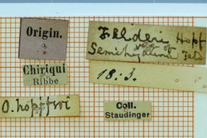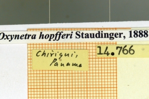 1-3: ♂ Holotypus von Oxynetra hopfferi, Daten siehe Etiketten (fot.: Ernst Brockmann, Fotos bearbeitet: Michel Kettner), coll. Zoologisches Museum der Humboldt-Universität zu Berlin.