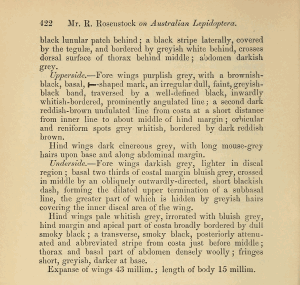 - Original description: Rosenstock, R. (1885): Notes on Australian Lepidoptera, with Descriptions of new Species. — The Annals and Magazine of Natural History, Including Zoology, Botany, and Geology. Fifth Series 16: 376-385, 421-443, pl. XI.