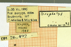 - Erstbeschreibung: Siewert, R. R., Madruga, J., Dolibaina, D. R., Mielke, O. H. H. & M. M. Casagrande (2018): Hidden in plain sight: a morphological study revealing three new species of the skipper genus Drephalys Watson, 1893 (Lepidoptera: Hesperiidae) from Brazil. — Zootaxa 4472 (3): 573–580.