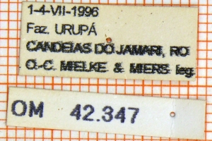 1-3: Holotypus ♂, Daten siehe Etiketten (fot.: Ernst Brockmann, Fotos bearbeitet: Michel Kettner), coll. Departamento de Zoologia, Universidade Federal do Paraná, Curitiba, Paraná, Brazil.