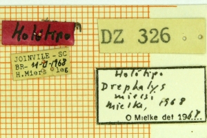 - Erstbeschreibung: Mielke, O. H. H. (1968): Duas espécies novas de Drephalys, provenientes de Santa Catarina (Lepidoptera, Hesperiidae). — Atas da Sociedade de Biologia do Rio de Janeiro 12 (3): 129-133.