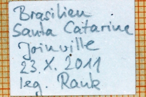 1-3: Holotypus ♂, Daten siehe Etiketten (fot.: Ernst Brockmann, Fotos bearbeitet: Michel Kettner), coll. Departamento de Zoologia, Universidade Federal do Paraná, Curitiba, Paraná, Brazil.