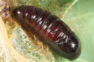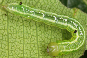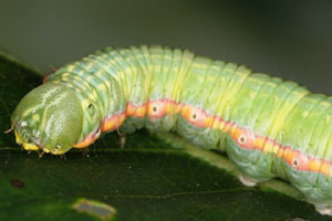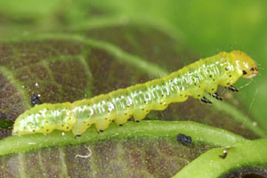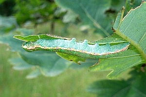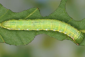 2: Deutschland, Baden-Württemberg, Istein, NSG Totengrien, 240 m, 20. Juni 2010 (Foto: Florian Nantscheff). An einem kleinen Eichenbaum (Quercus spec.) im NSG Totengrien habe ich eine Raupe das erste Mal gefunden. Sie saß am Astende auf der Unterseite eines Blattes in Augenhöhe. Das NSG Totengrien liegt in der Trockenaue am Oberrhein, die wegen des Kiesuntergrunds sehr trocken-heiß ist und nur einen spärlichen Baumbewuchs aufweist.Forum