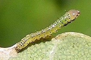1, frisch geschlüpfte Eiraupe: 5. August 2010