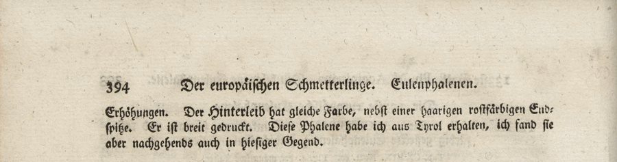 - Esper, J. C. [1796-1805]: Der europäischen Schmetterlinge Vierten Theils zweiter Band erster Abschnitt welcher die Eulenphalenen von Tom. IV Tab. CXXVI. Noct. 47. — Tom. IV. Tab. CLXXVIII. Noct. 99. und die Bogen Bbb bis Uuu enthält. 373-698, pl. CLXXXIV-CXCVIII.