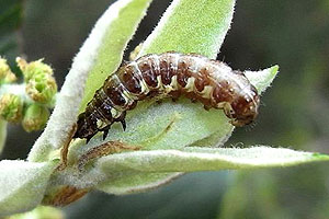 3: L4 außerhalb des Blattgespinstes, Frankreich, Languedoc-Roussillon, Hérault, St. Jean de Buèges, leg. 19. Mai 2010 an Quercus ilex (cult., fot. & det.: Allan Liosi)Forum