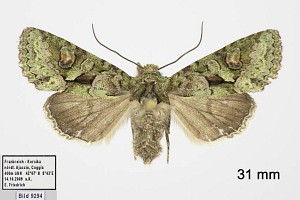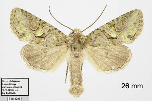 3: Griechenland, Zentral-Nordgriechenland, genauer Ort unklar, Raupe Mitte-Ende Mai 2009, evtl. an Quercus ilex?, e.l. 21. September 2009 (Foto: Peter Lichtmannecker), det. Stefan Ratering, conf. Daniel BartschForum