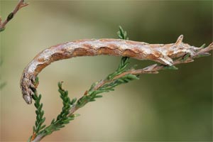Diese in der Oberlausitz (Sachsen) an Heidekraut (Calluna vulgaris) gebundene Art ist nur selten zu finden. Man kann sie Mitte bis Ende Mai in den Abendstunden aus den reinen Heidekrautbeständen aufscheuchen. Am Licht ist der Falter auch zu sehen. [Friedmar Graf]