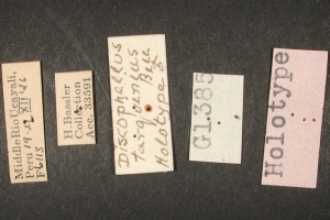 10-12: Holotypus ♂ von Discophellus tarquinius Bell, 1940, Daten siehe Etiketten (fot.: Bernard Hermier, Fotos bearbeitet: Michel Kettner), coll. American Museum of Natural History. New York City.