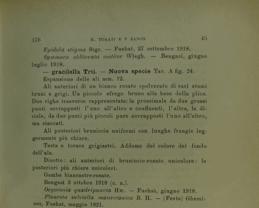 - Erstbeschreibung: Turati, E. & V. Zanon (1922): Materiali per una faunula Lepidotterologica di Cirenaica. — Atti della Società Italiana di Scienze Naturali 61: 133-178, pl. A. Pavia.