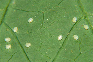 1-4: Mitte [1] und Beginn [2-4] des letzten Stadiums, Deutschland, Sachsen, Auwald nordwestlich Leipzig, an Himbeere, 28. April [1] und 24. April 2009 [2-4] (Studiofotos: Heidrun Melzer), leg., cult. & det. Heidrun Melzer