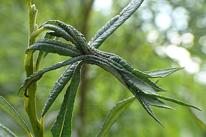1-2: Befallsbild an Korb-Weide (Salix viminalis): Deutschland, Rheinland-Pfalz, Welling, Nettetal, 5. September 2007 (Fotos: Herbert Stern), det. Renate Ridley, conf. Stefan RateringForum