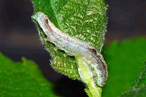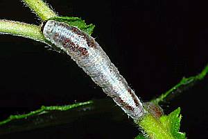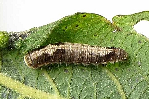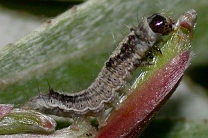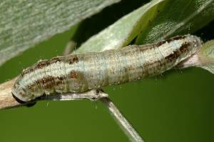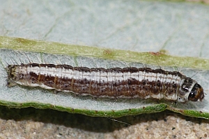 1-3: 7 mm, Niederlande, Zuid Flevoland, Almere, Michauxpad, Raupe mit Futter (Weide, Salix sp.) leg. 10. August 2006 (Studiofotos 13. August 2006: Allan Liosi), det. Stefan RateringForum