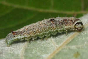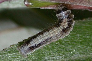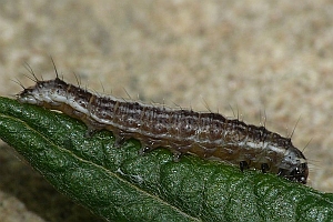 1: 10 mm, Niederlande, Zuid Flevoland, Almere, Michauxpad, Raupe leg. 10. August 2006 (Studiofoto am 21. August 2006: Allan Liosi), cult. Allan Liosi, det. nach Raupenfoto Stefan RateringForum