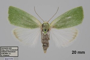 1: links Earias vernana , rechts Earias clorana: Deutschland, Niedersachsen, Lüneburg, NSG Lüneburger Kalkberg, ehemaliger Kalkabbau mit teilweise offenen Bereichen und trockenrasigen Stellen, 14. Mai 2018, am Licht (det. & fot.: Frank Stühmer)Forum