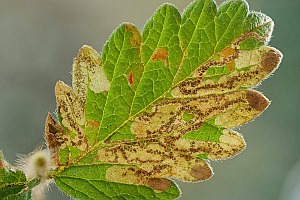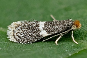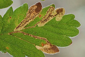 Schon von Heyden (1861: 41-42) hatte berichtet: "Raupe weniger niedergedrückt, glatt, glänzend, grünlichgelb. Kopf bräunlichgelb mit braunen Flecken und dunkelm Mund. Nackenschild mit zwei braunen Flecken. Die Raupe lebt im October, auch noch Anfangs November minirend in den einzelnen Fiederblättchen der Agrimonia Eupatoria, wo sie lange, gewundene, ziemlich breite braune Gänge macht, die sich oft zu einem grossen Räume erweitern, der zuweilen das ganze Blättchen einnimmt, besonders wenn es gleichzeitig von 2 bis 3 Raupen bewohnt ist. Sie verlässt dieMine nicht, sondern macht sich in derselben, gewöhnlich in einem Blattzahn, ein flaches, eiförmiges, gelblichweisses oderbräunliches Gespinnst. Sehr häufig in schattigen Wäldern um Frankfurt und Offenbach. Die Motte entwickelt sich Ende Mai. (1858.)"